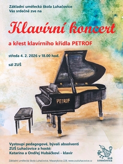 Srdečně Vás zveme na slavnostní klavírní koncert spojený s křtem nového klavírního křídla PETROF, které škola získala díky mimořádné finanční podpoře zřizovatele Zlínského kraje.