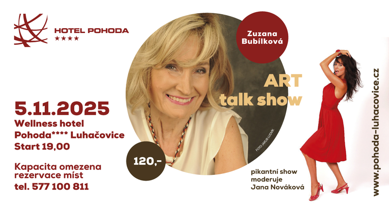 Srdečně Vás zveme na talk show Zuzany Bubílkové, která se uskuteční v prostorách hotelu Pohoda.
