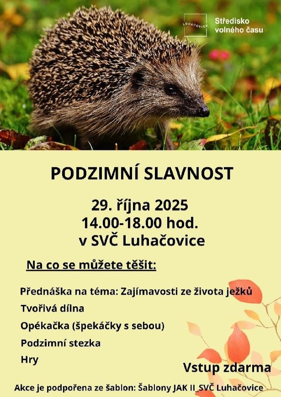 Od pana Klimeše se dozvíte spoustu zajímavostí ze života ježků, budete si moci opéct špekáček, něco si vyrobit, zahrát hry nebo se vydat na podzimní stezku.