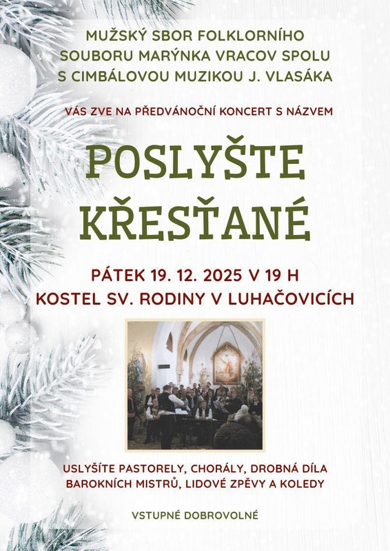 Přijďte si vychutnat krásu tradiční hudby a dopřát si chvíli předvánočního ztišení.