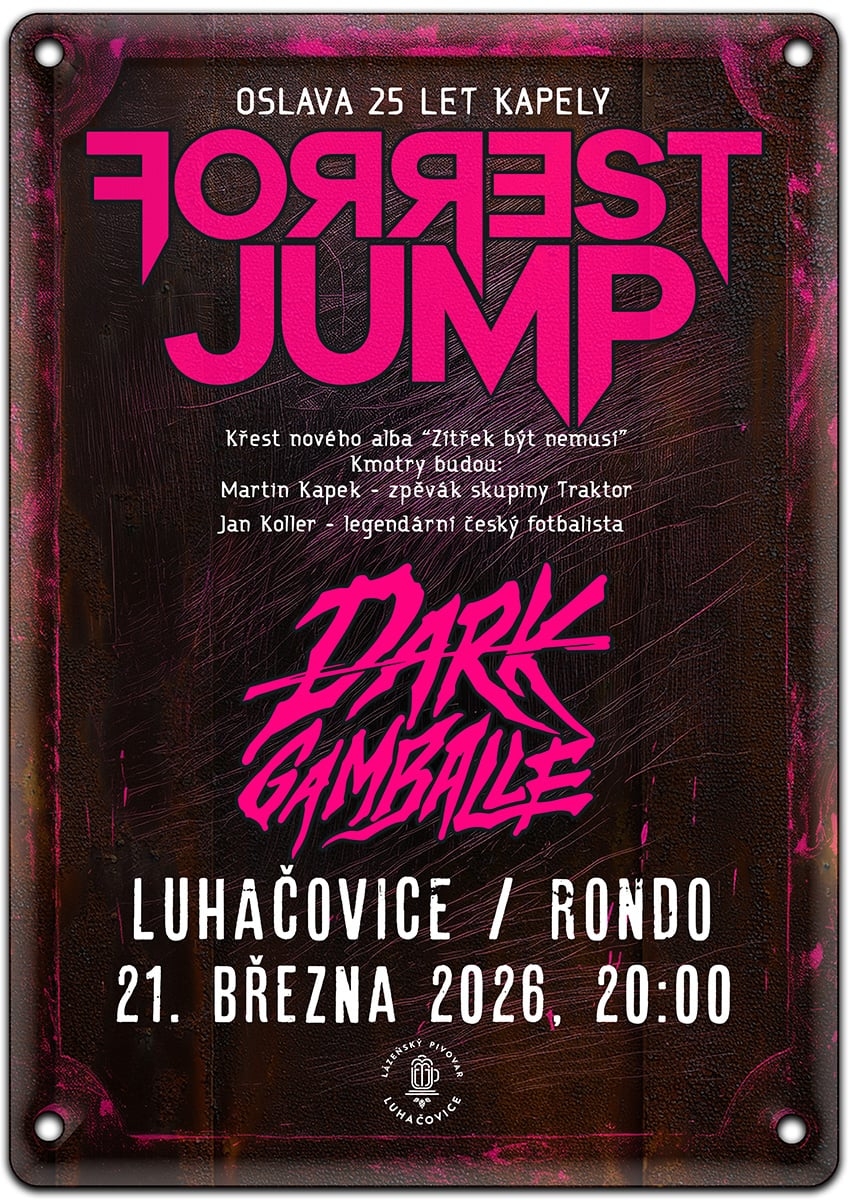 Největší koncert v 25leté historii FORREST JUMP a zároveň křest nového alba „Zítřek být nemusí“. Kmotry alba budou Martin Kapek (Traktor) a Jan Koller (legendární fotbalista).