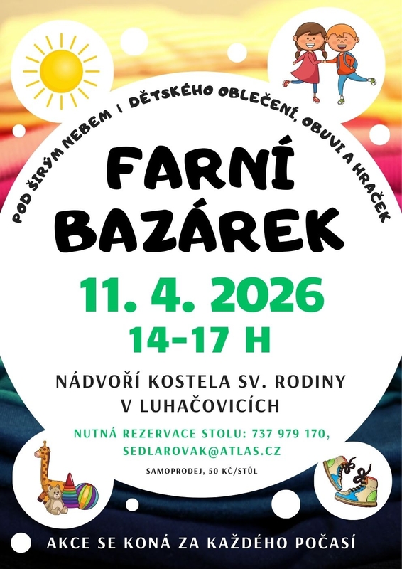 přijďte s námi strávit veselé odpoledne na Farním bazárku!